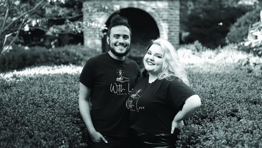 Arts Administration alumni Alexandra Burns and Tommy Townsend made lemonade out of lemons when the COVID-19 pandemic sent many of us into isolation. What began as a hobby is now the fully-formed LLC With Love Candle Company, with orders shipped throughout the United States and pop-up shops at many locations in Lexington.